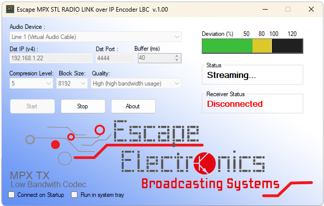 The Escape MPX STL Radio Link Encoder (LBC) is a professional solution for transporting the full MPX signal over IP. It sends the FM-ready signal—including pilot tone and RDS directly from the studio processor to the transmitter site using a low-bandwidth codec optimized for broadcast-grade low latency.